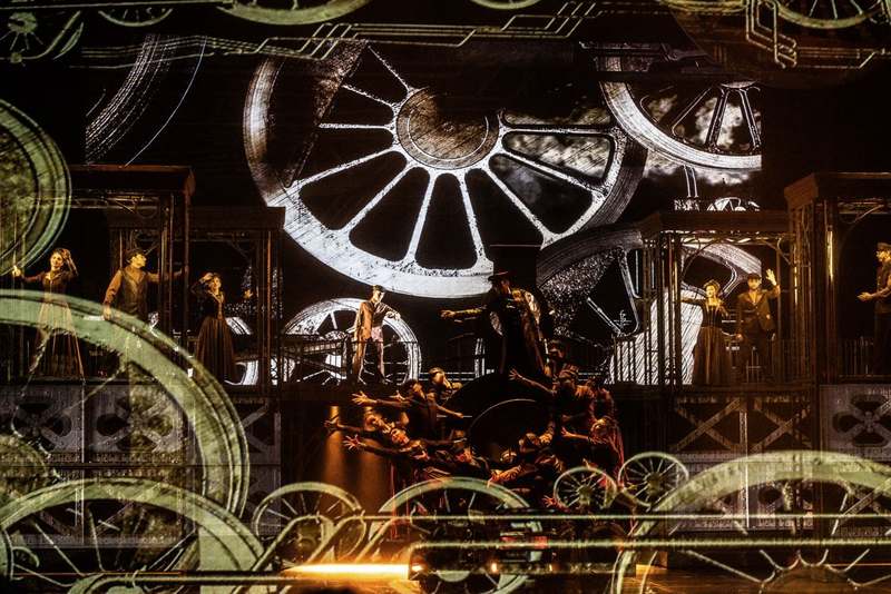 该剧的舞台运用了多种高科技,九块屏幕、重达数吨的金属妄想以及多少多百个照明装置在舞台上组合在一起,建树出使人印象深入的“多媒体拼图”:从19世纪的歌剧场到溜冰场、奢华的宫殿到夏日的村落子子,传神的场景让不美不雅众将心比心,一秒穿梭。运用“火车头”以及“齿轮”等舞美元素,揭示歌词中对于“人生列车”的表白,更不才场前为不美不雅众带来使人难以信托的壮不美不雅以及戏剧性的热潮。