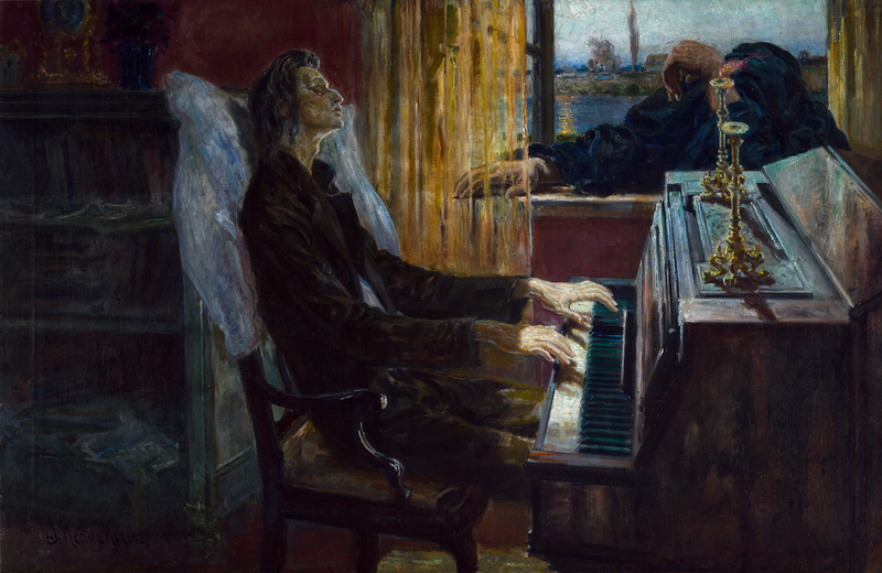 萧邦最后的以及弦,约瑟夫·梅欣娜-克热斯,布面油画,1910年,70×106.5×2 cm,珍藏机构:波兰萧邦钻研院、萧邦博物馆。