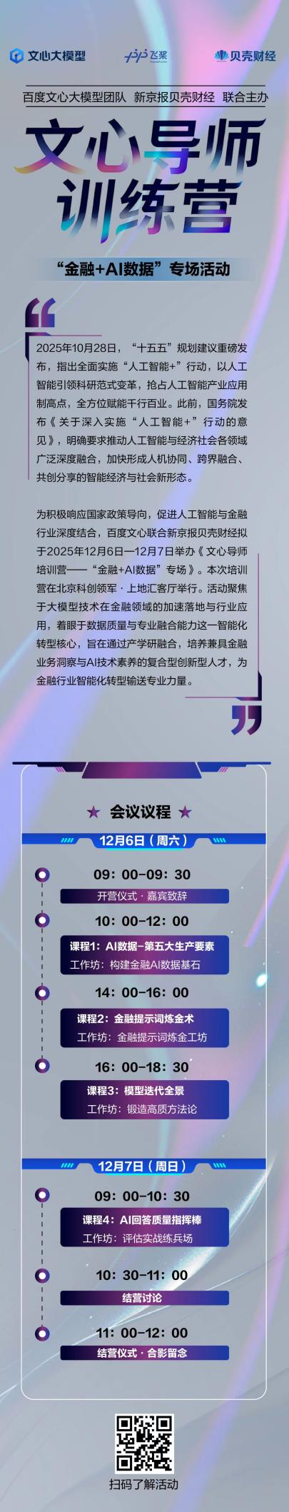 该培训营即顺理当下家养智能协同财富睁开需要,壳财开启聚焦大模子技术在金融规模的报名减速落地。经由资深专家全程授课教育,直面中间下场的行业名师亲授;深度拆解金融场景运用,把握中间措施的着实案例精讲;实际散漫实战,实现学致使用的高品质实战磨炼及集聚行业丰硕资源,拓展高价钱人脉的优异生态链接等,哺育兼具金融歇业洞察与AI技术实质的复合型强人,为金融业智能化转型输送实力。
