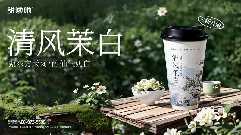 在这次降级茶底从前,甜啦啦就已经将“清风茉白鲜奶茶”拦阻降级。从包装来看,降级后的产物更具山水意境的水墨风,突出茉莉花香元素。更紧迫的是,除了视觉包材降级,“清风茉白鲜奶茶”茶底的拼配同步做了降级,在口感前途一步改善,经由研发团队一再试验以及救命,让花香馥郁成为主调,搭配甄选奶源,在主打康健零削减的根基上,部份口感更清新。降级后,茶香更显冶艳,花香加倍含蓄。