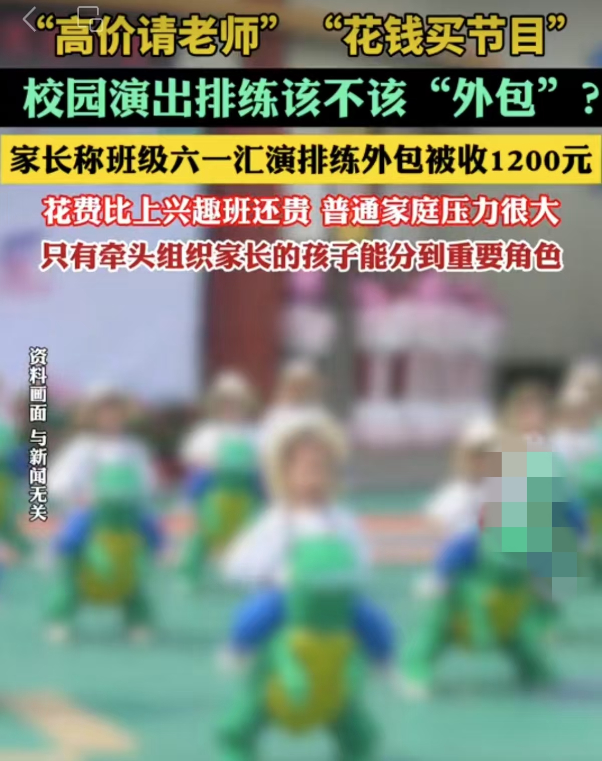 在相关报道中可能看到,湖南某班级排歌舞剧,人均收费1200元请校外机构;中部某市学校行动会排队饰演耗资数千元外包;更有甚者,为侵略市级角逐,班级不惜破费数万元聘用业余团队操刀……原本是放松身心揭示专长的娱乐休闲行动,都酿成为了拼资源拼钱的外包,使人不胜欷歔。