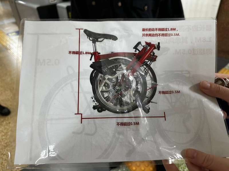 该站务职员揭示,假如自行车折叠后适宜“最长的边不逾越1.8米,其余双方均不逾越0.5米”的尺度,是可能带进车站的。“简纵贯俗会碰着良多照料折叠车坐地铁的市夷易近,咱们都患上丈量下尺寸,必需患上适宜相关要求能耐进站。”