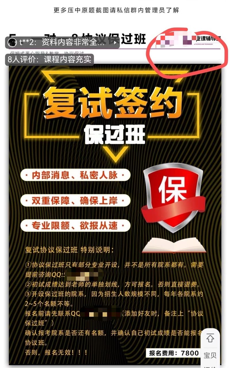 ▲网店“复试签约保过班”张扬海报。最新往事质料图