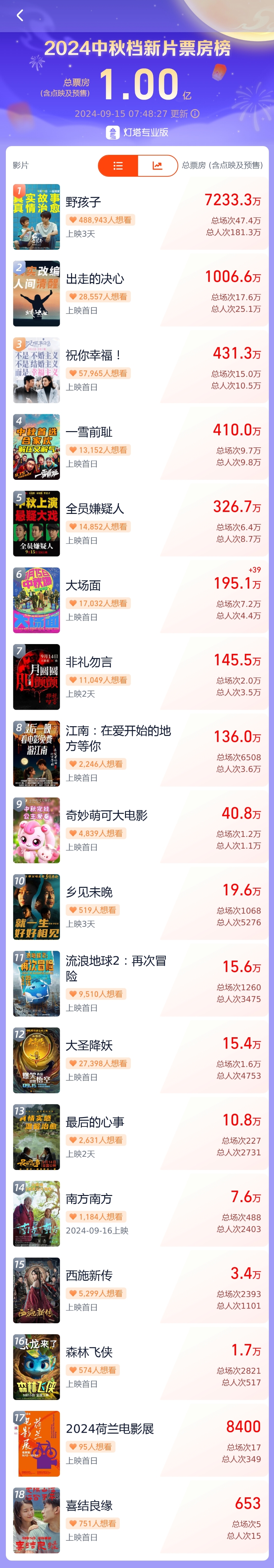 中秋档新片票房榜。