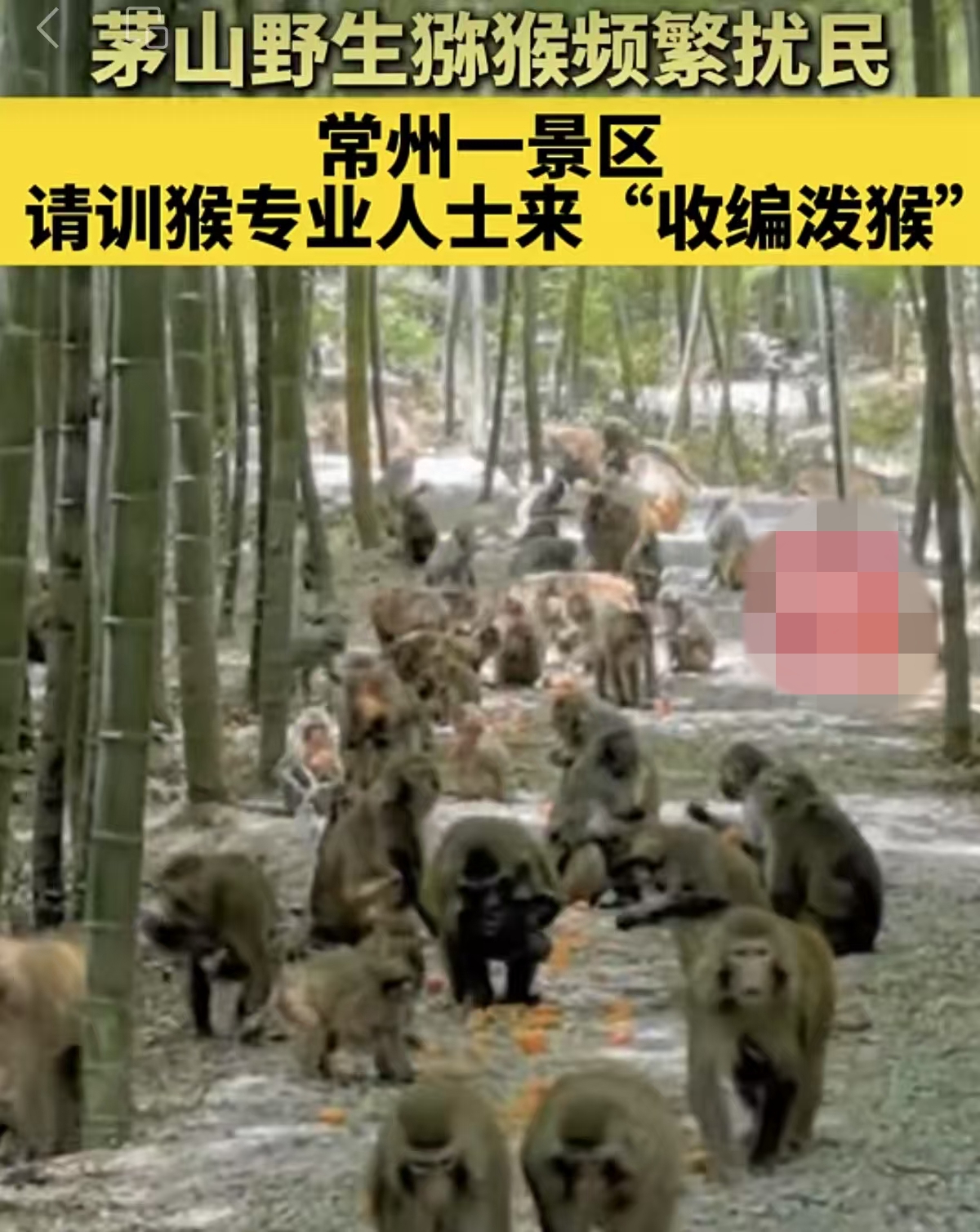 ▲江苏一景区“收编”茅山家养猕猴的措施激发关注。图/群集视频截图