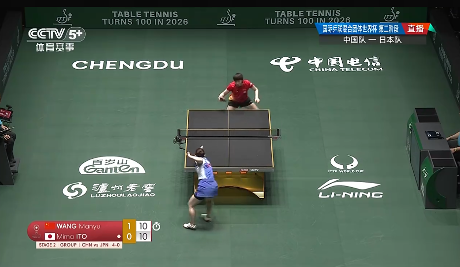 最后一场女双角逐,蒯曼/王曼昱1-0战败张本美以及/大藤沙月,比分为:11-9。最终,中国队大比分8-5击败日本队。