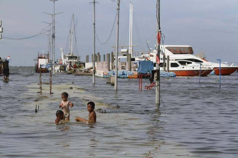 当地光阴2021年11月9日,印度尼西亚雅加达,公共在急流中穿行。图/视觉中国