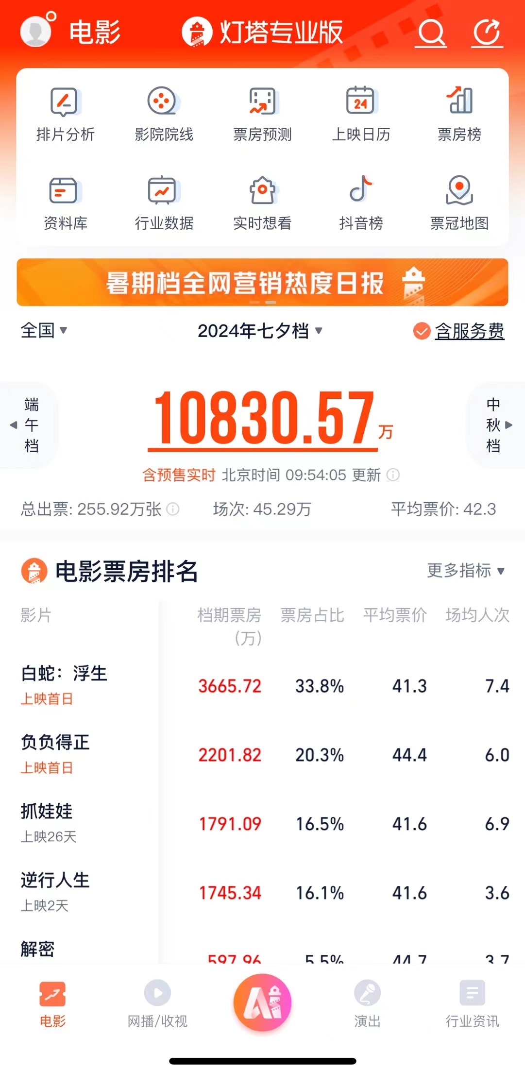 2024年七夕档片子票房破亿,《白蛇:浮生》位列第一 — 最新往事