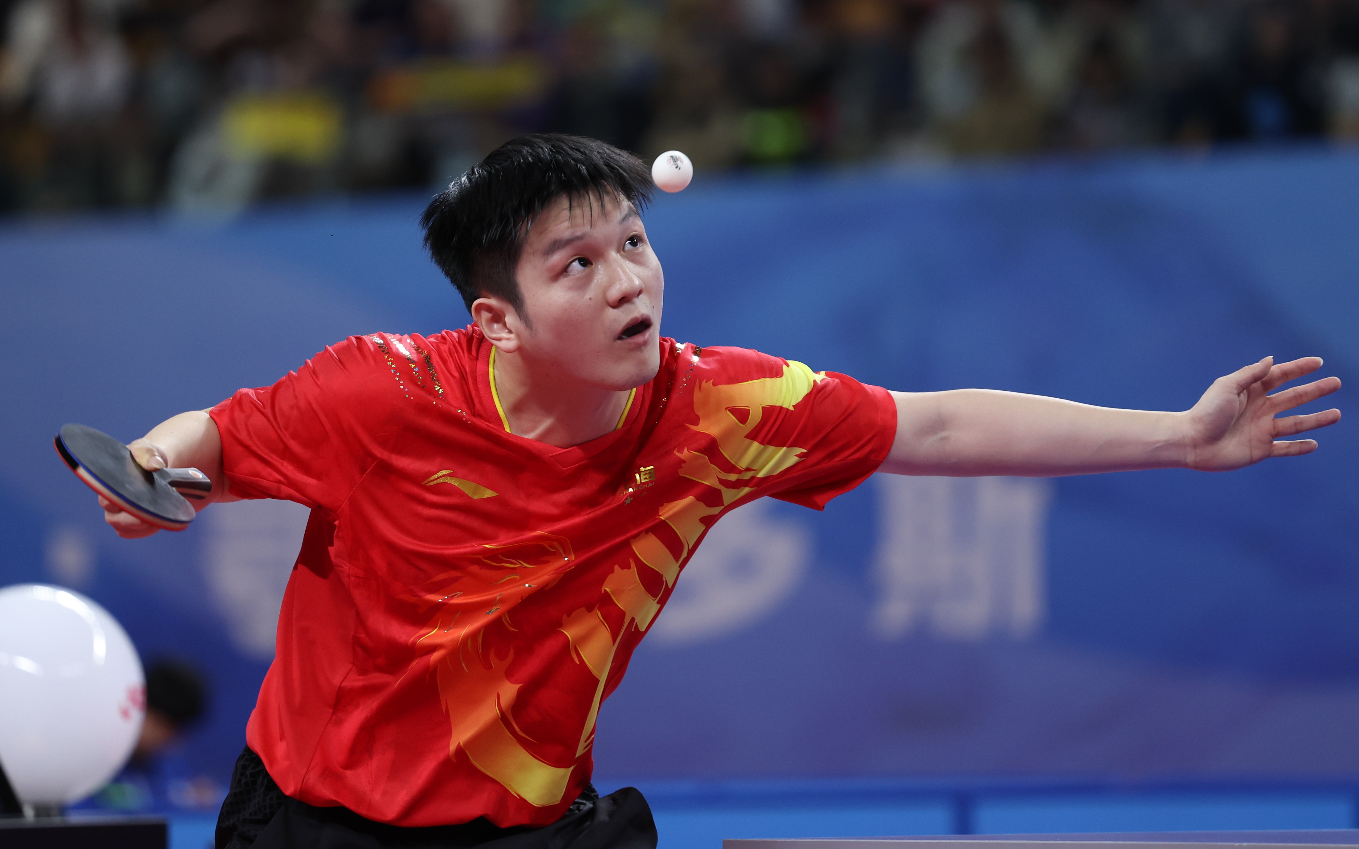 10月19日,乒乓球全锦赛男团决赛,联福龙陈樊振东辅助上海队3比1战败黑龙江队夺冠。冈总 图/新华网