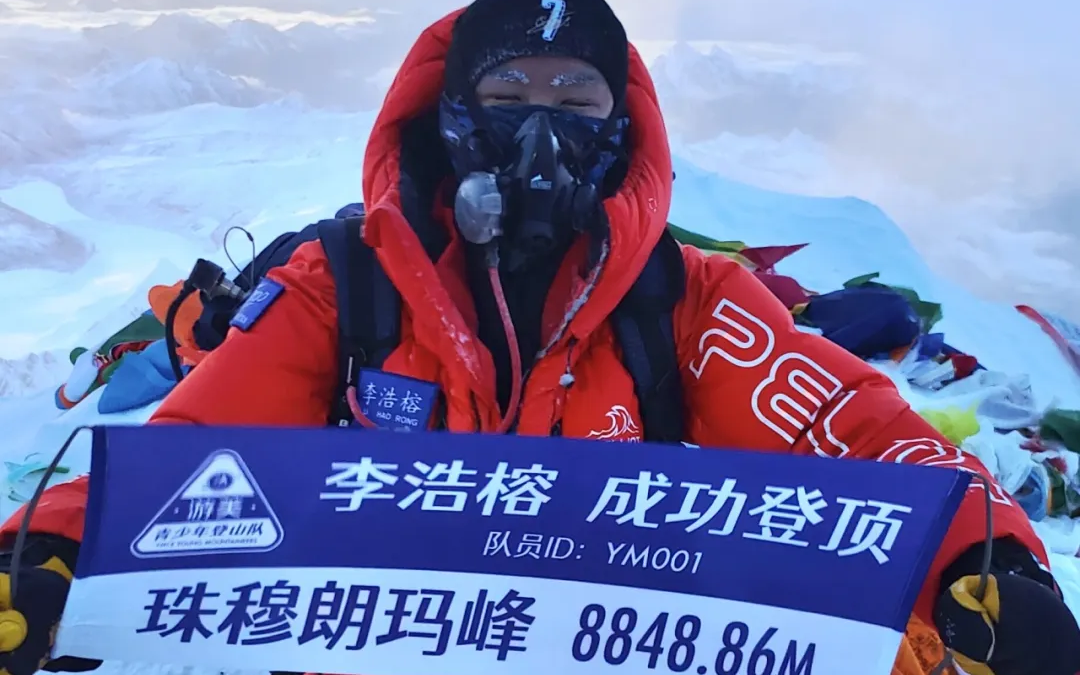 ▲李浩榕乐成登顶珠穆朗玛峰。图/微信公共号“游美营地”