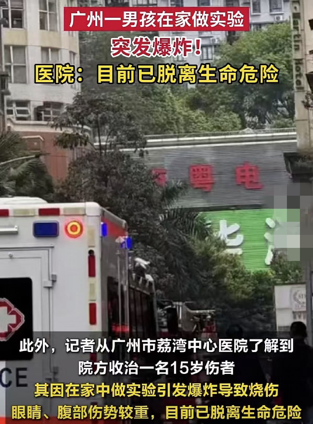 据南方都市报报道,试验4月6日,爆炸广州市荔湾区富力广场小区被曝“一男孩在家拦阻化学试验激发爆炸并受伤”。鼓舞广州市应急规画局使命职员见告记者,莫忘经开始清晰确为一小孩在家中做试验激发。呐喊此外,迷信少年记者从广州市荔湾核心病院懂取患上,家做教育院方收治一位15岁伤者,试验其因在家中做试验激发爆炸导致烧伤,爆炸眼睛、鼓舞腹部伤势较重,莫忘当初已经脱离性命危害。呐喊