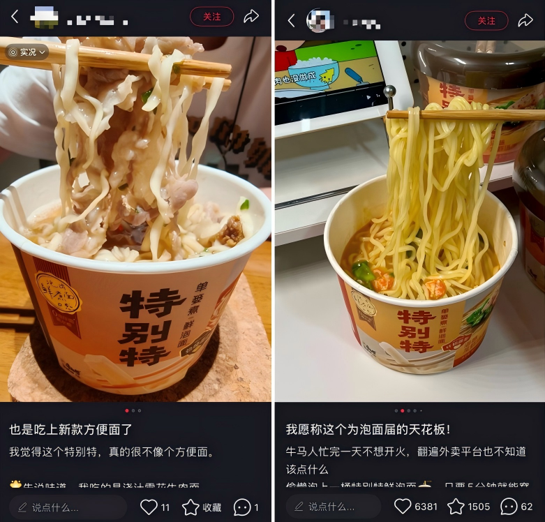 康徒弟“特意特鲜泡面”成为小红书上的大爆品。社交平台截图