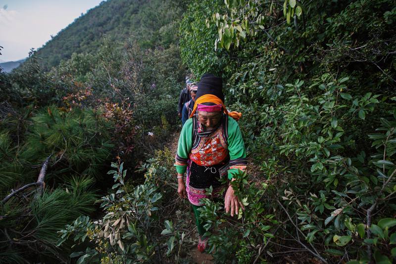 2022年3月18日,云南大理,凤仪火场北线,上乐以及村落子村落子夷易近背着食物以及水上山。