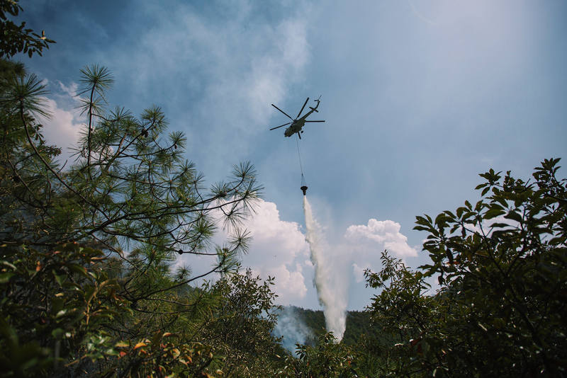 当日(18日)火场北线分心无意偶尔有一两处火点复燃,南方航空护林总站2架直升机往返火场与水源,对于火场实施吊桶洒水作业。在直升机洒水的“呵护”下,普洱支队的森林消防员们经由风力灭火机加水枪的组合,对于火点“逐个击破”。