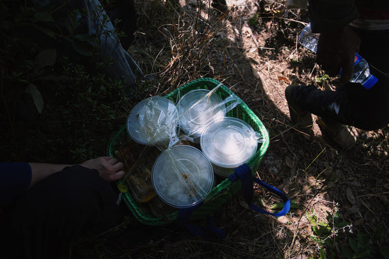 2022年3月18日,云南大理,凤仪火场北线临近,村落子夷易近背上山的热呼饭。