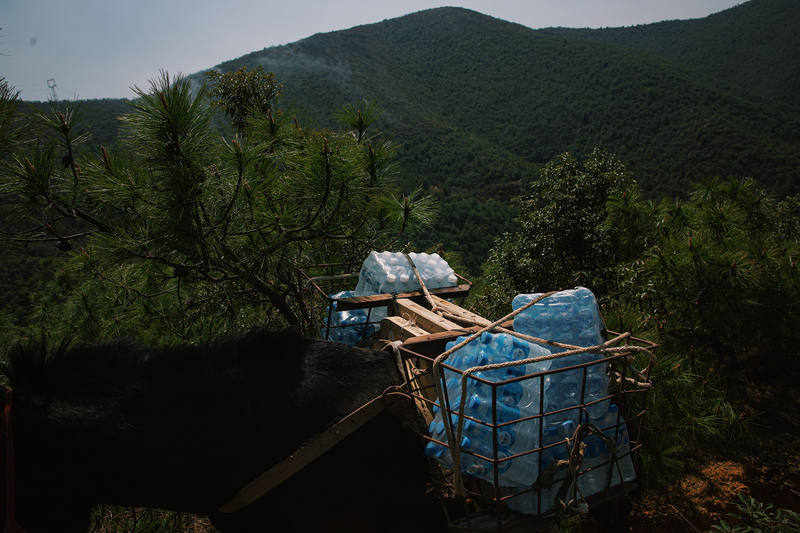 2022年3月18日,云南大理,凤仪火场北线,骡子驮着的饮用水。