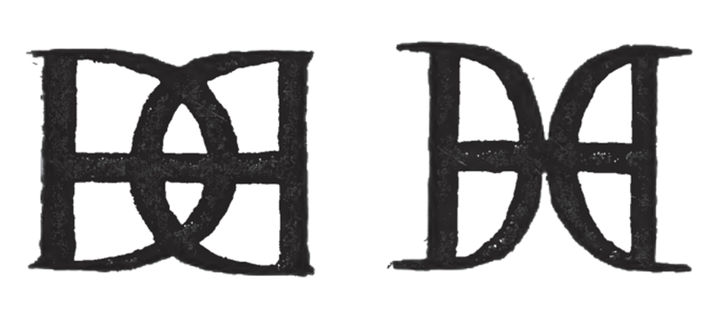 代表亨利以及迪亚娜名字的缩写字母“H”以及“D”的图案与代表亨利以及凯瑟琳名字的缩写字母“H”以及“C”的图案,《女士藏书票》内页插图。