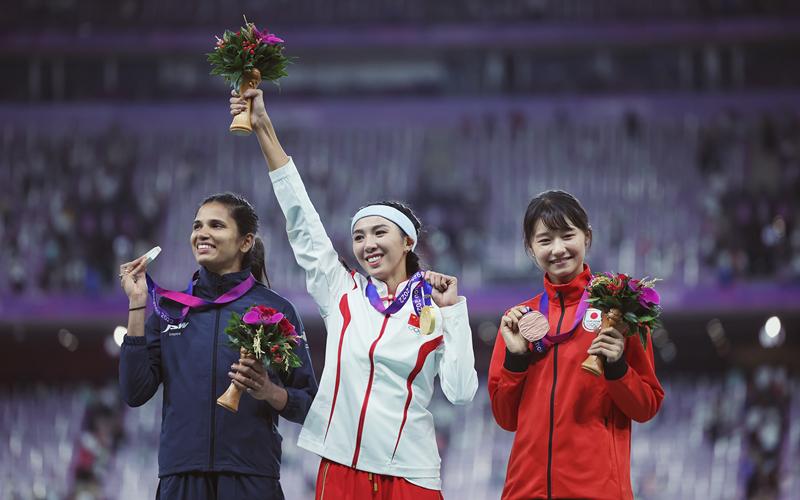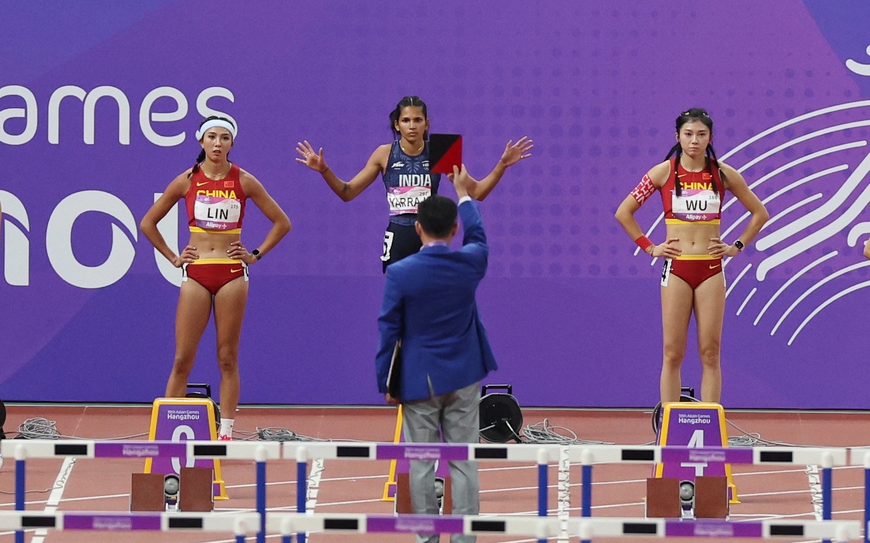 吴艳妮的下场因抢跑犯规被作废,中国选手林雨薇(中)摘金,印度选手亚拉吉(左)下场适用取患上银牌。最新往事记者 薛珺 摄