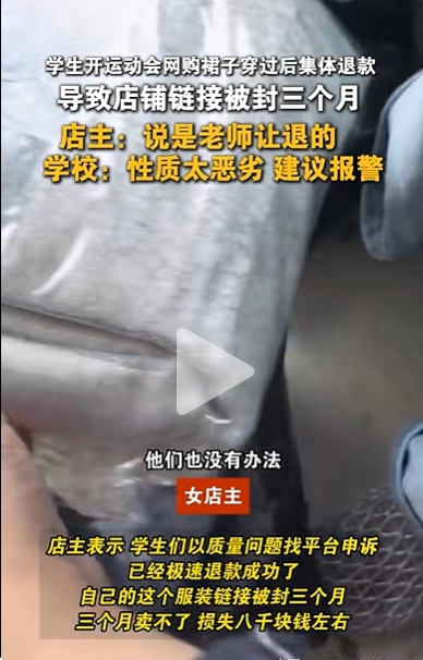▲学生组团狂退60多件演出服,商家很受伤。狂退图/群集视频截图
