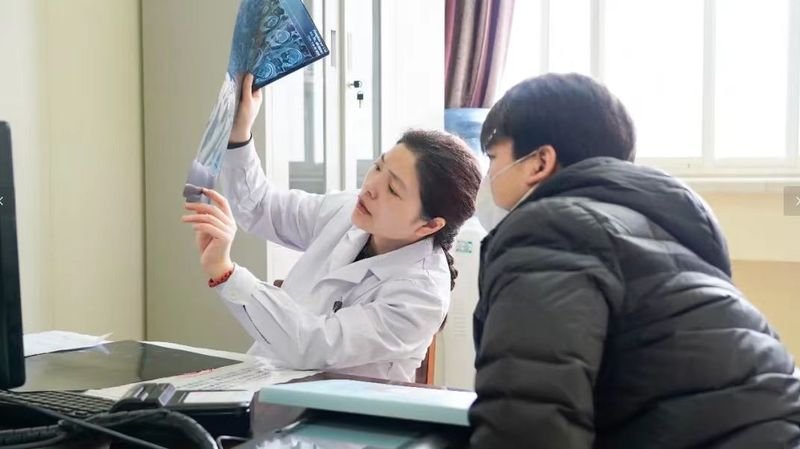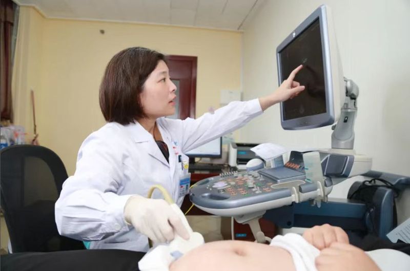 郑州大学第三隶属医院医学遗传与产前诊断科主任、河南省降生缺陷防治规画办公室主任刘灵在给患者做磨难。受访者供图