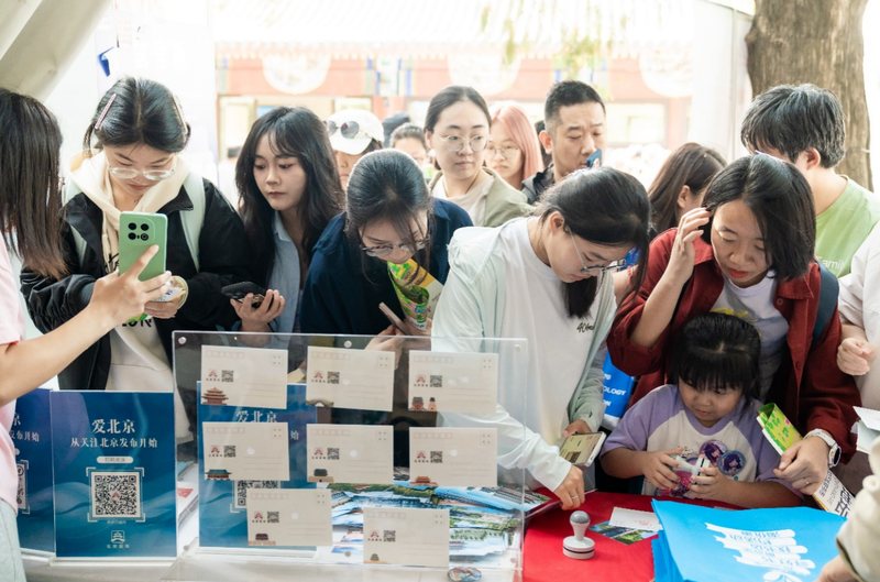 在“北京宣告”功能台现场,以“爱北京,从关注北京宣告开始”为中间主题,配置装备部署盖章点、扫码关注互动区、外宣杂志《北京》赠阅区等,罗致了泛滥市夷易近立足。主理方供图