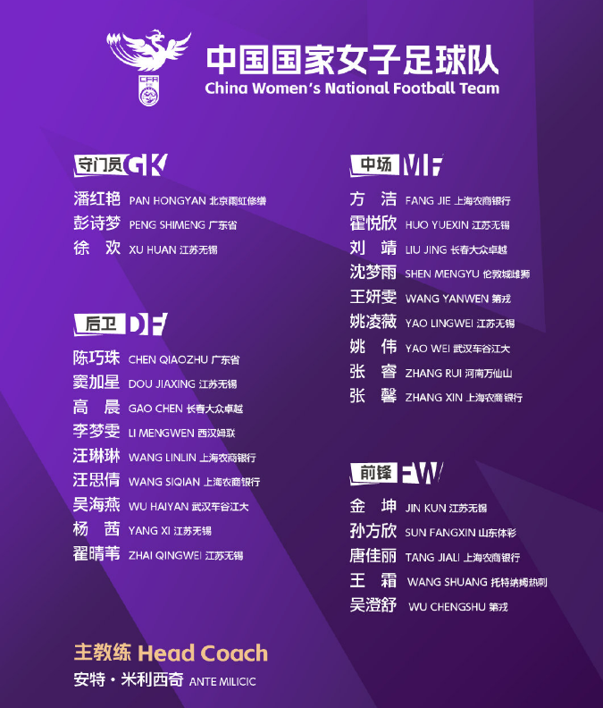 低谷中的参赛中国女足正在重新群集实力。10月末停止的永川国内女足锦标赛,中国女足以两连胜夺冠。11月14日,中国女足在北京会集,并将于11月15日至12月5日赴荷兰退出聘用赛。共有26人落选新一期女足集训名单,外洋五将王霜、李梦雯、吴澄舒、王妍雯、沈梦雨在列,北京女足门将潘红艳落选。
