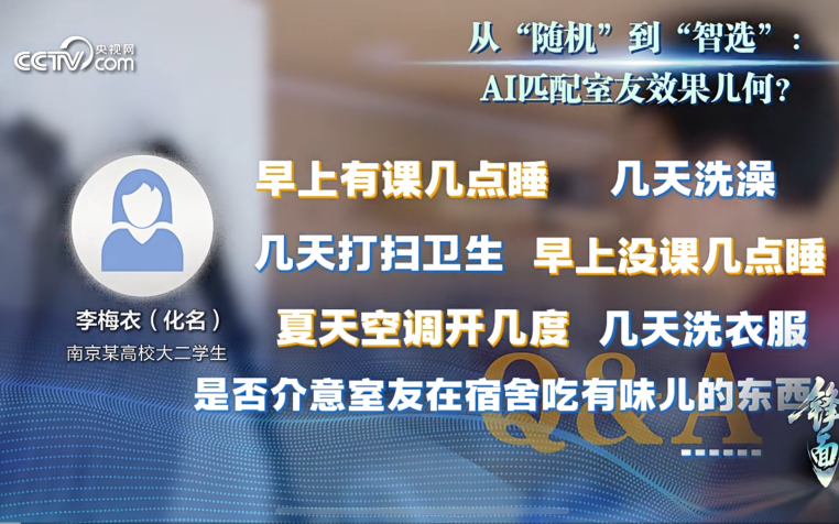▲由AI凭证就寝习气、卫生尺度以及噪声耐受度立室舍友,立室懒政下场有待磨难。舍友图/央视网视频报道截图