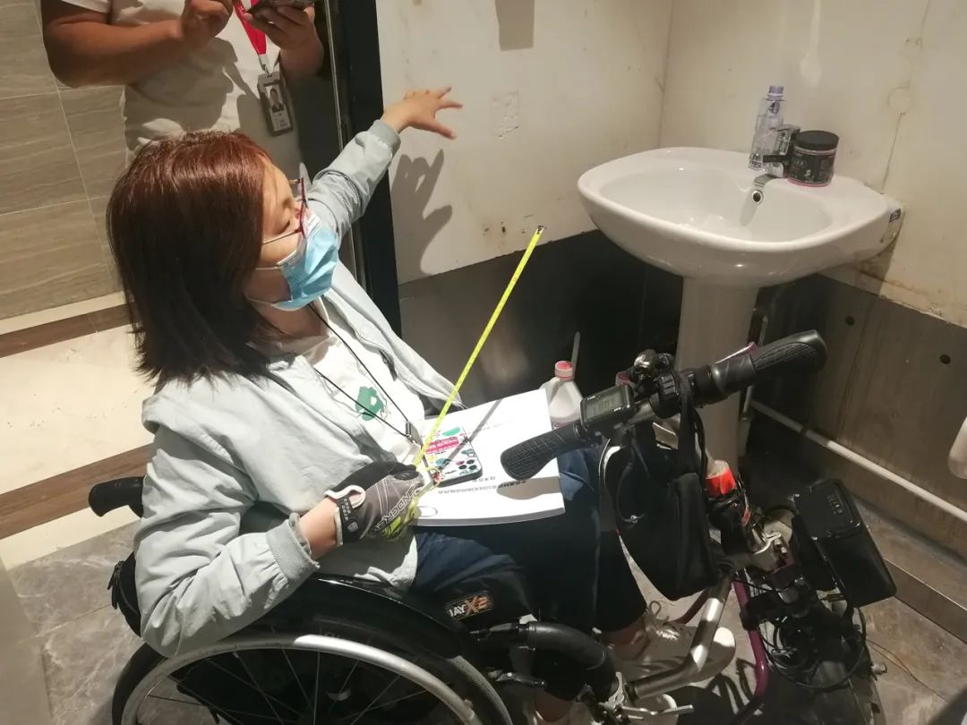 此外,对于不拦阻洗手间来说,距离以及高度也颇为紧迫。洗手池前端距离地面的高度不应大于800毫米、镜子的高度距离洗手池台面不应小于100毫米、取纸器应设在座便器的侧前方,高度为500-600毫米……徐燕春以及杜鹏各自有一套纸质的不拦阻指南,对于若何修筑一间不拦阻洗手间,下面纪律患上详细,需要他们亲自开着轮椅去体验每一个运用关键。