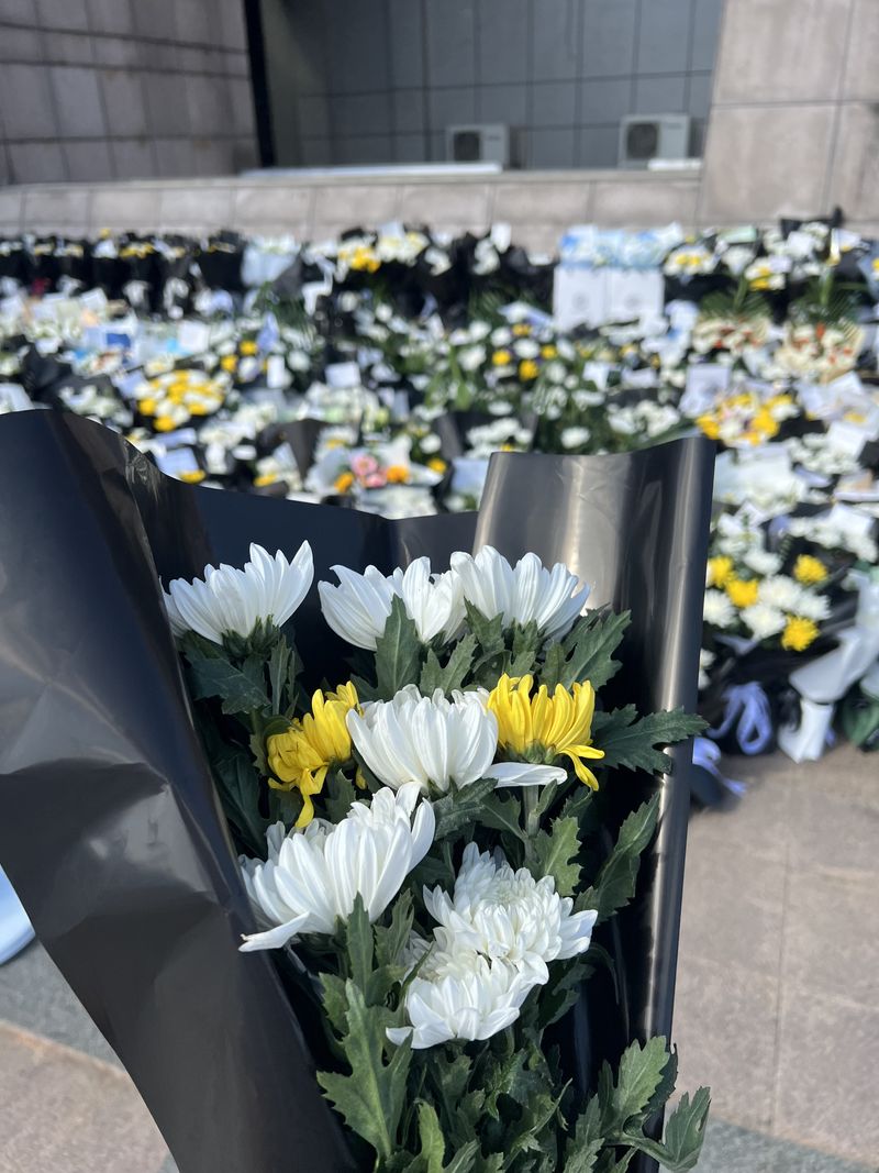 鲜花也摆在温附一院17号诊室门外。事发后,大楼侧门已经被封锁,收支需要经由严酷的安检,保安穿梭在差距的楼层间巡视。