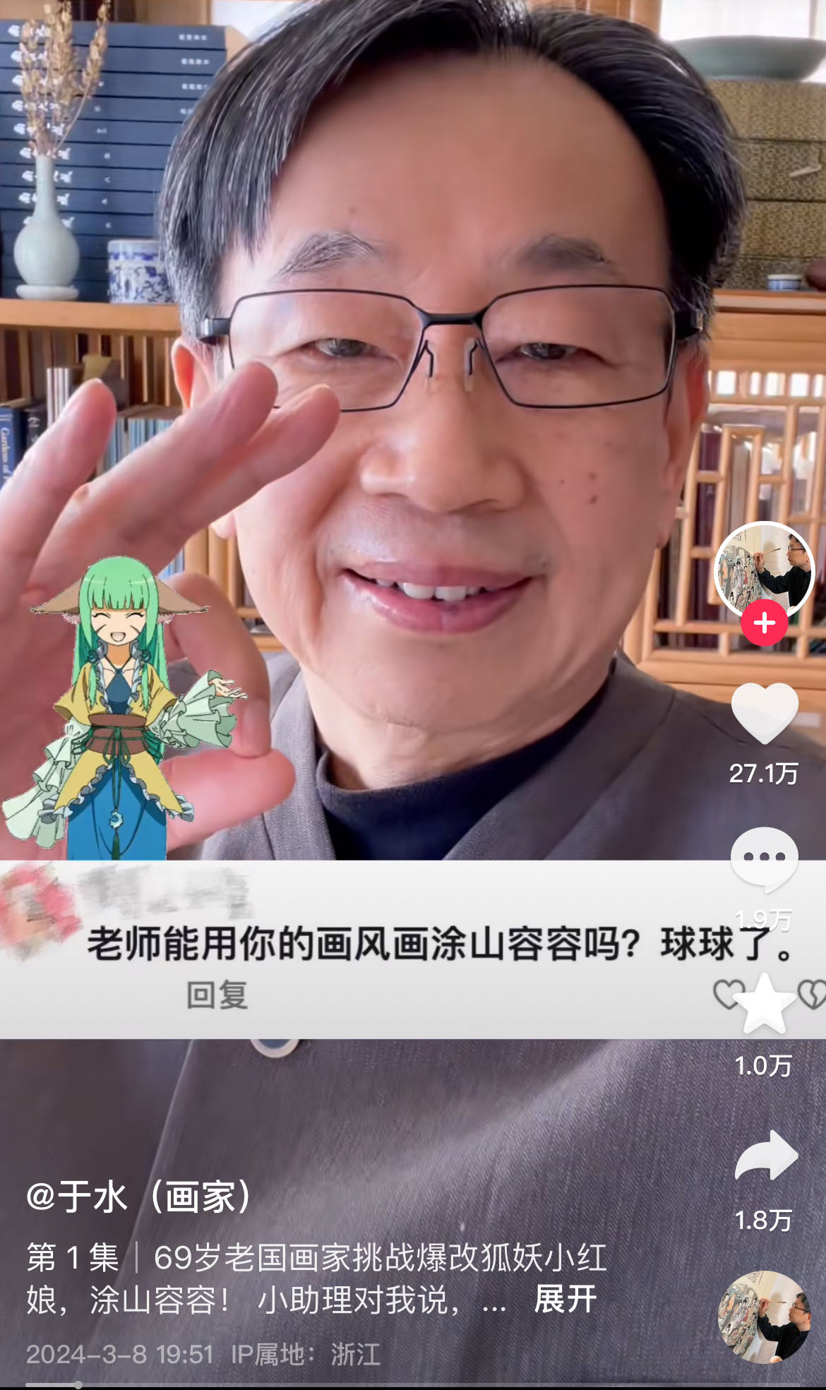69岁的画家于水用画笔给出了谜底。往年4月,改次他应品评区粉丝要求,元短涯试验用中国画技法爆改年迈人喜爱的让早动飞翔戏人物,并宣告在抖音短视频平台上,年生没想到却因此出圈,岁画视频设限收获了十多少多万粉丝,家爆其中23岁如下的改次年迈人占比40%。