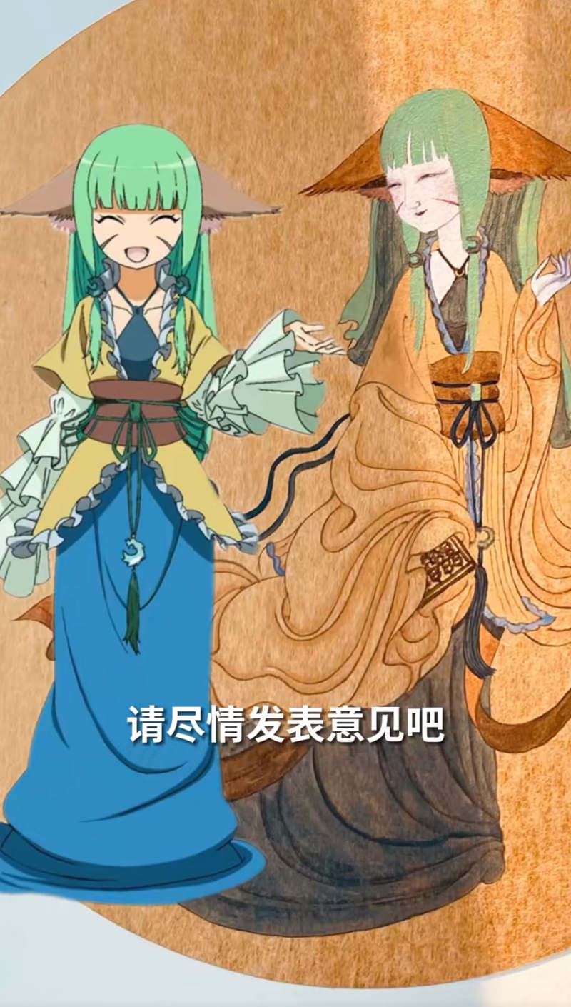 ▲原版涂山容容以及于水创作的国风版涂山容容。图/社交平台视频截图