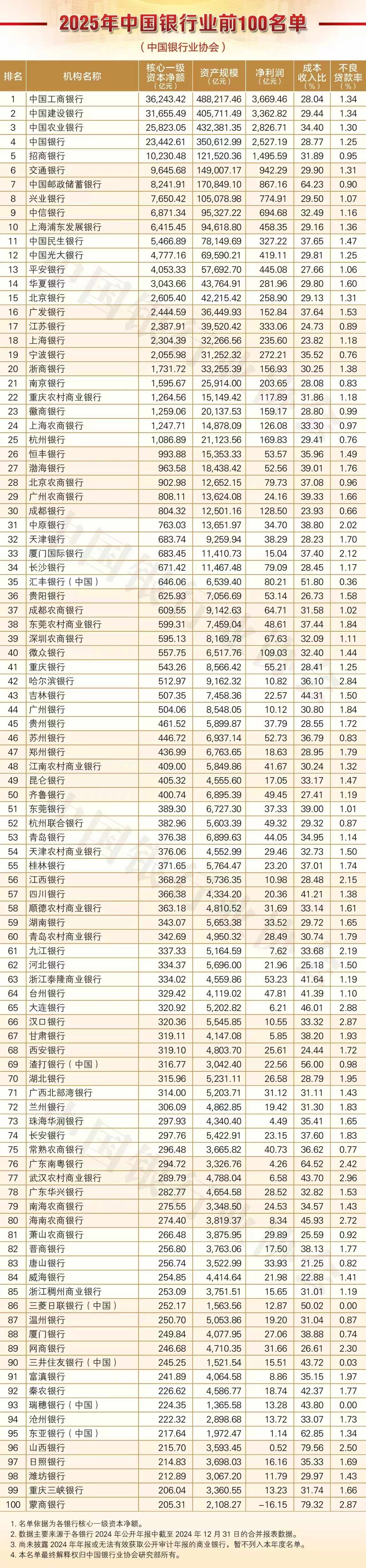 此外,从这份名单中也可能看到,中小银行经由刷新化险以及市场化重组不断提升相助力。