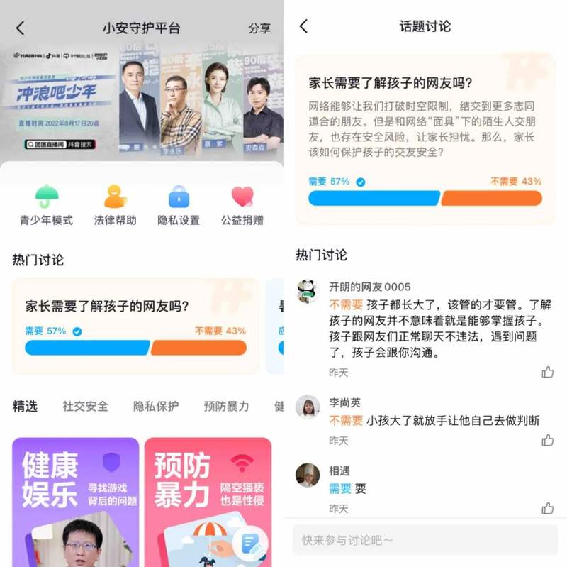 往年8月抖音上线“小安呵护平台”暑期版本,为青少年以及家长提供知识以及交流空间。