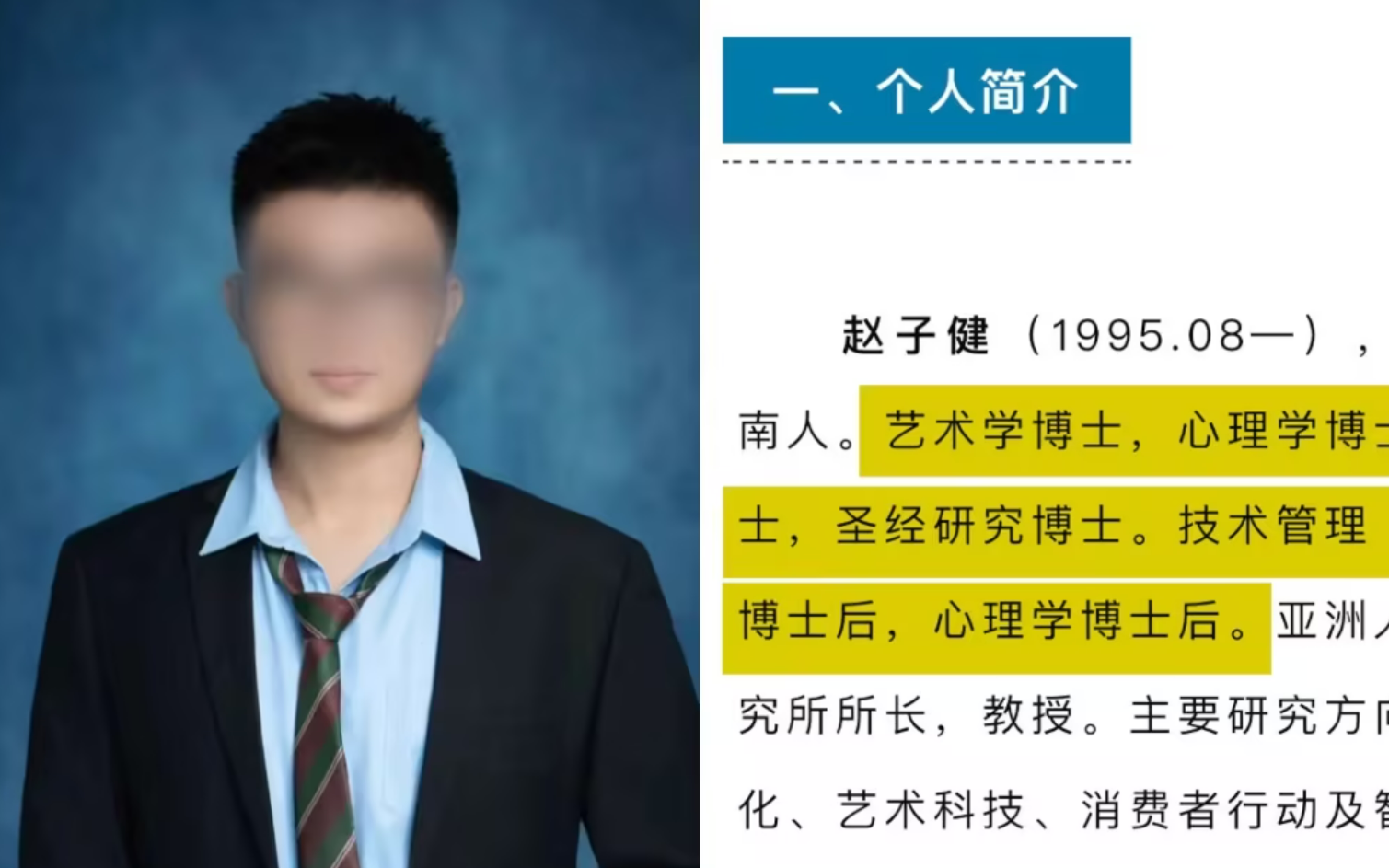 该钻研院宣告的个博赵子健总体简历信息称,其是士学水份艺术学、神思学、位炸教育学等四个差距倾向的裂简历博士,以及技术规画等两个倾向的多少多多博士后,社会兼职横跨化学、后钻翻译、个博抗癌、士学水份家养智能等多个规模。面临相关质疑,该钻研院回应称,已经停息与赵子健的聘用关连,并对于其学历学位睁开核查。