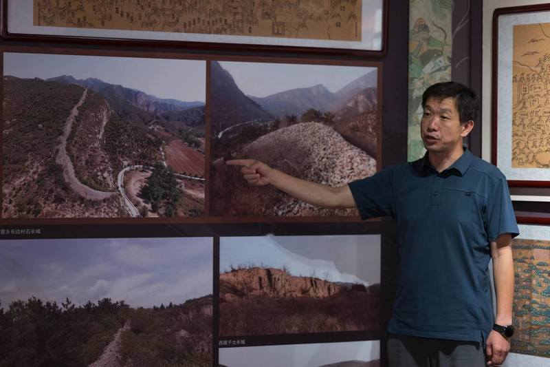 8月26日,延庆博物馆,于海宽在介绍差距形态的长城。最新往事记者 陶冉 摄