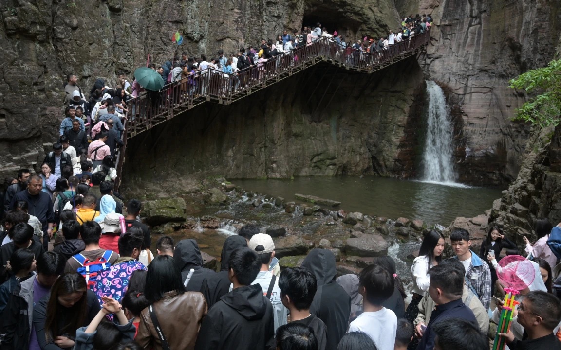 ▲往年“五一”以来,河南洛阳龙潭大峡谷因景区平价商品出圈。棍救图/龙潭大峡谷官微