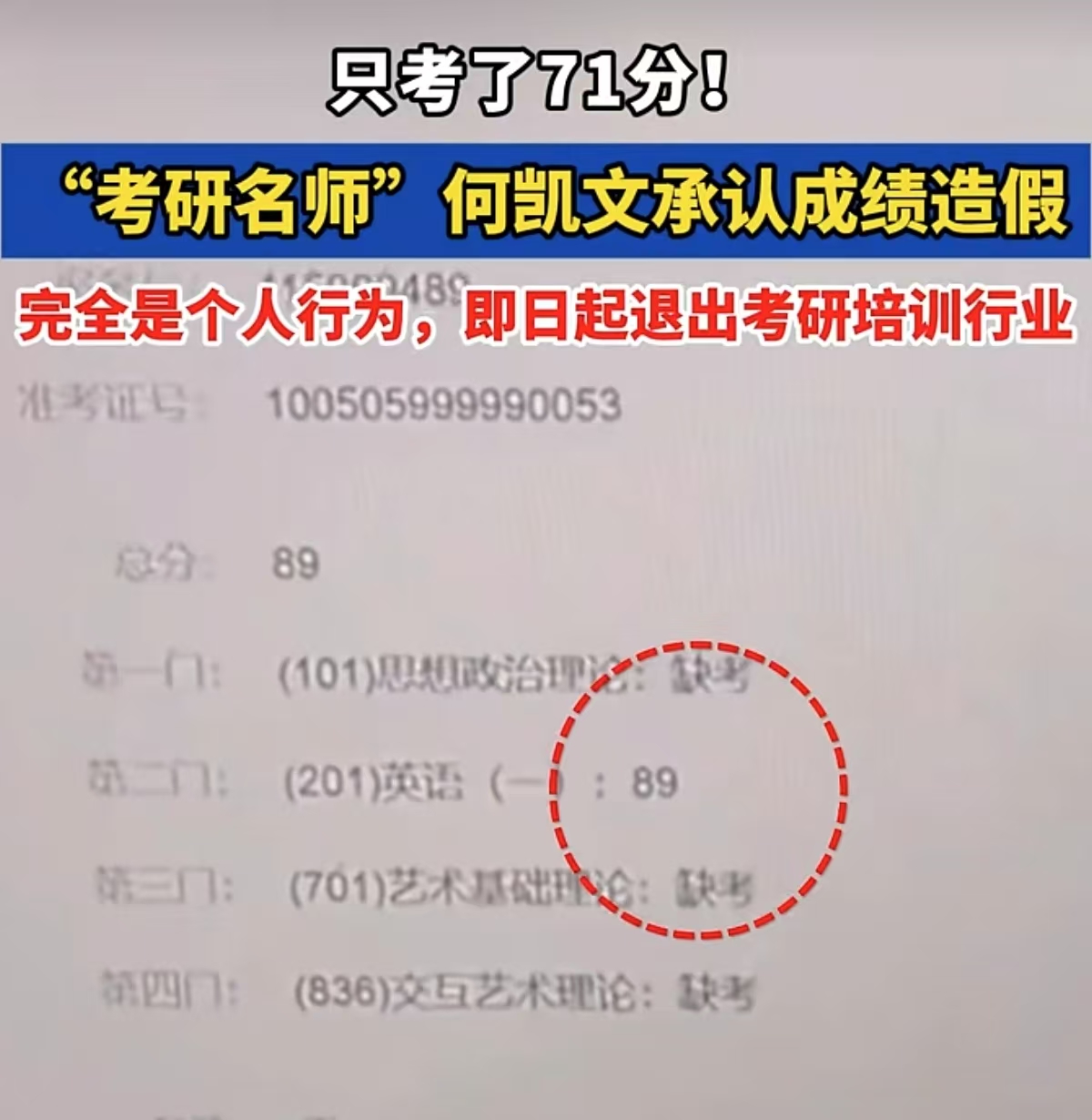 3月8日,下场响行驰名考研教育教师何凯文经由其微博账号,造假钟就近期引起普遍关注的何凯2025年考研英语(一)下场造假使命,向公共宣告了一封正式赔罪信。文人在信中,设倒何凯文招供了自己此前宣告的塌敲考研英语(一)89分成绩为虚伪信息,并揭示其着实下场为71分。考研名师