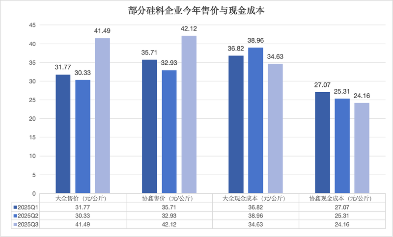 比力两家企业吐露的数据不难发现,两者往年三季度硅料售价均泛起清晰了回升。三季度大全能源多晶硅单元销售价钱泛起回升,为41.49元/千克,环比削减近40%。协鑫科技三季度颗粒硅售价42.12元/千克,环比削减近30%。