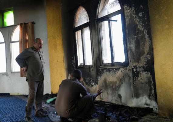 △约旦河西岸遭熄灭的清真寺内烧焦的墙面