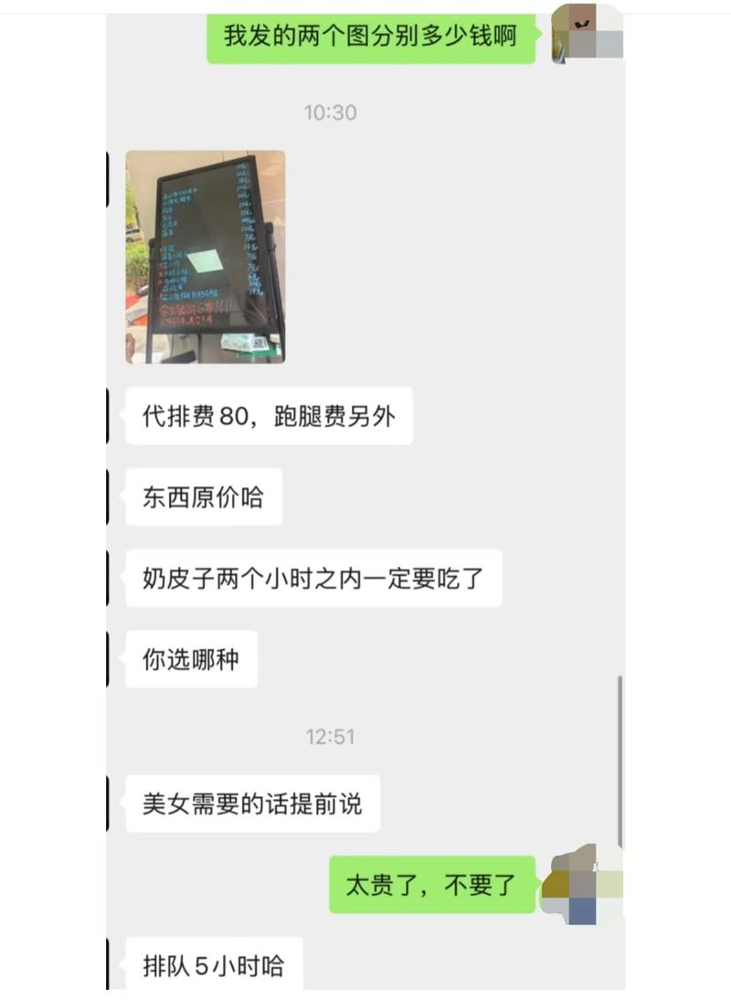在社交平台,吐槽奶皮子糖葫芦排队难、价钱贵的网友也开始削减。据一位南京网友发帖称,有黄牛出价140元“代购”奶皮子糖葫芦,收罗80元代排费、60元跑腿费,糖葫芦价钱另算。“代购”价钱之以是如斯高,是由于排队要花5个小时。