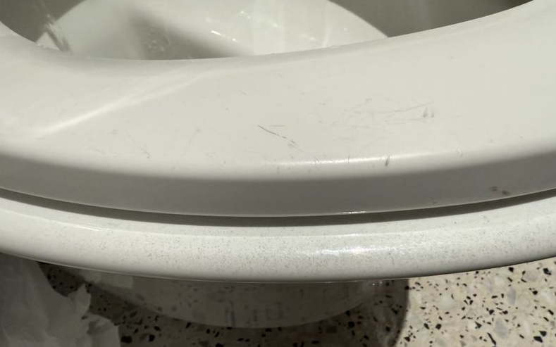 ▲北京某大型商场女洗手间,马桶圈边缘有磨损痕迹。商道里最新往事记者 曹晶瑞 摄
