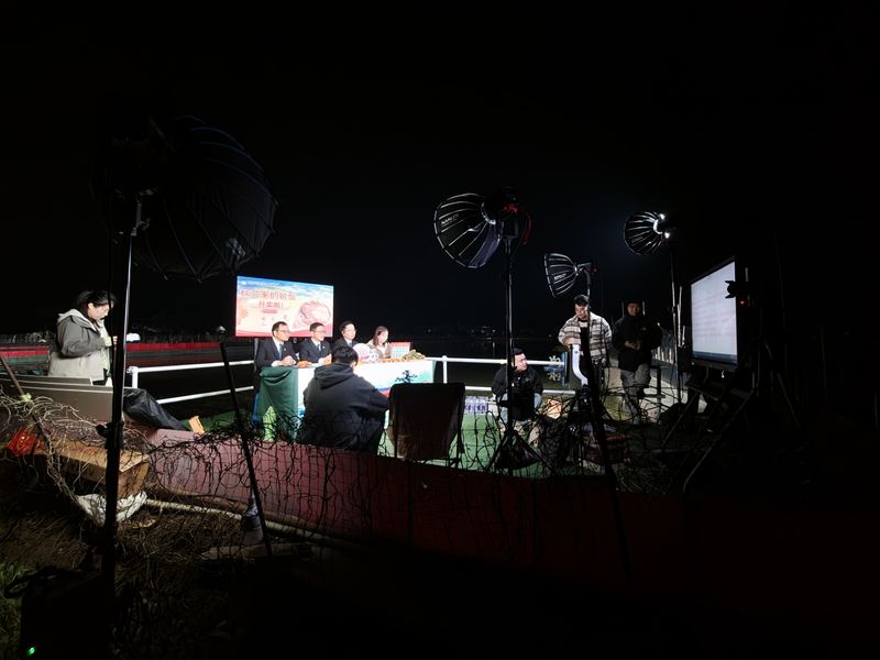 10月31日晚,直播间就搭建在秋兰家蟹塘中间。 受访者供图