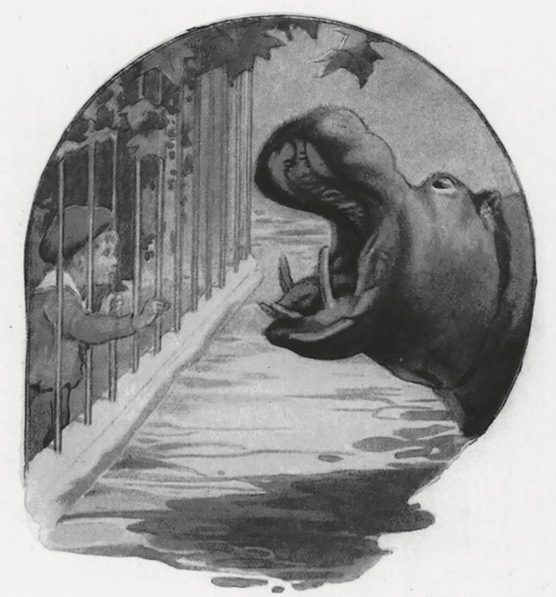 玛格丽特·塔兰特在伦敦植物园里喂河马。《野人与野兽:今世植物园的降生》插图。