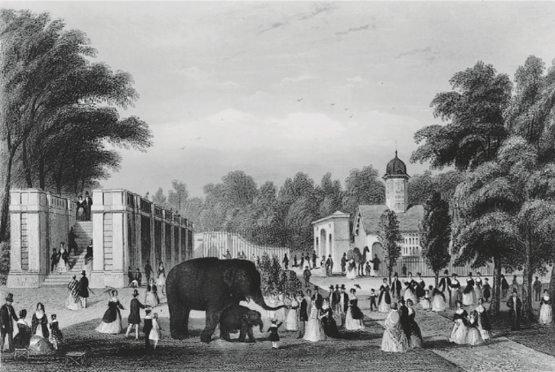 托马斯·霍斯默·谢泼德,《摄政公园伦敦植物园》。《野人与野兽:今世植物园的降生》插图。