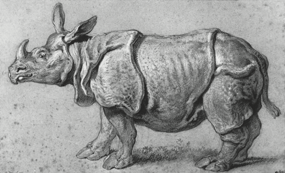 巴普蒂斯特·乌德里,《犀牛钻研》,1749年。《野人与野兽:今世植物园的降生》插图。