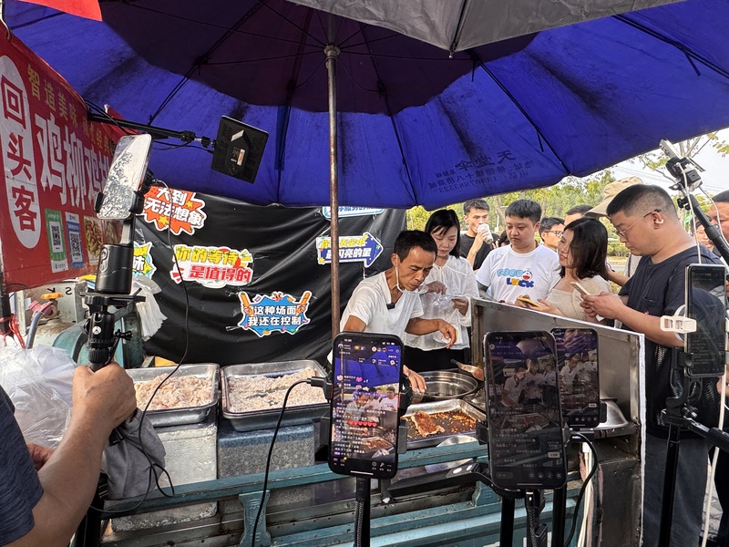 10月15日,鸡排摊前围满了各地赶来的主播。 最新往事记者 熊丽欣 摄