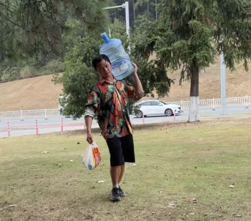 但现场层层叠叠的人以及手机,让他抉择“豁进来一把”。“我不装了,我即是来蹭流量的显眼包。”他向镜头投降,摊牌,把终年穿的绿色工服换成为了藏蓝色短袖,搭配西装裤以及油亮的皮鞋。水不卖了,他忙着当现场的“秩序大使”:给排队的人递凳子,坚持队伍秩序。