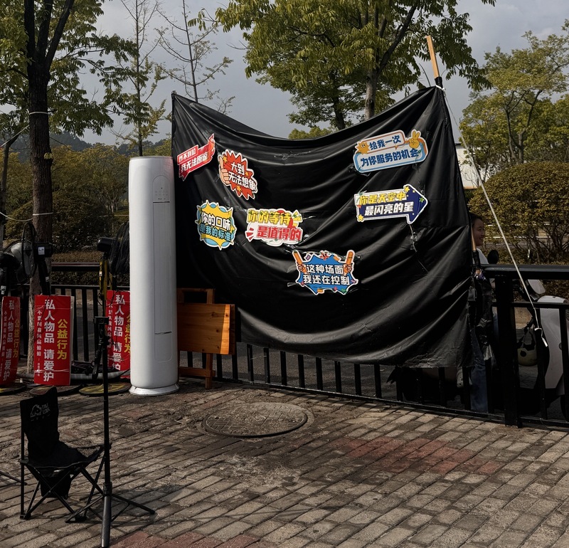 其后,粤菜馆残缺关门,他买了部内行机,下定决断做全职主播。2024年6月,郭有才在各地巡演,他开车随着,从山东到湖南,再到浙江,跟了五六站。菏泽三十七摄氏度的高温,为了抢直播前排的C位,他清晨四点就守在广场,困了就往地上躺,还患上挨着蚊子咬,直到越日上午十点开播。