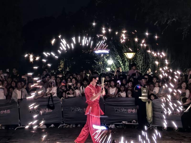 10月1日晚,游客在江苏常熟沙家浜风物区旁不美不雅夷易近俗饰演。最新往事贝壳财经记者俞金旻摄