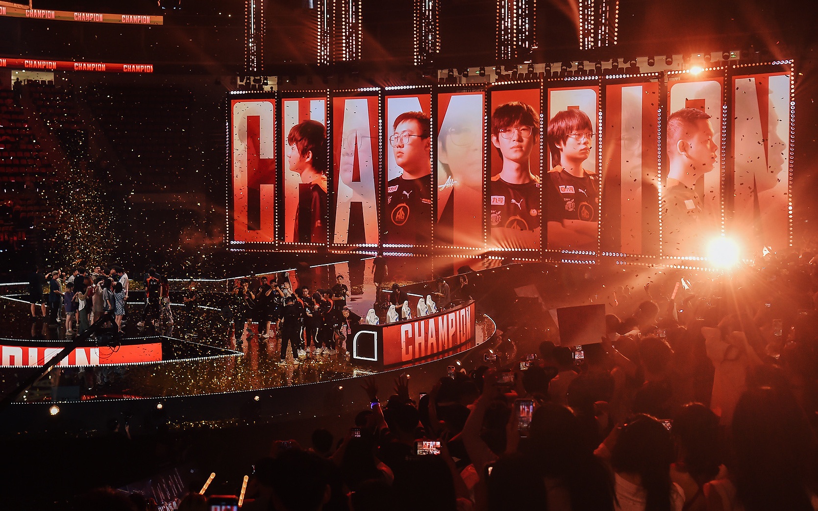 AG夺冠之后,漫天的金色雨飘下,落在决赛舞台上。